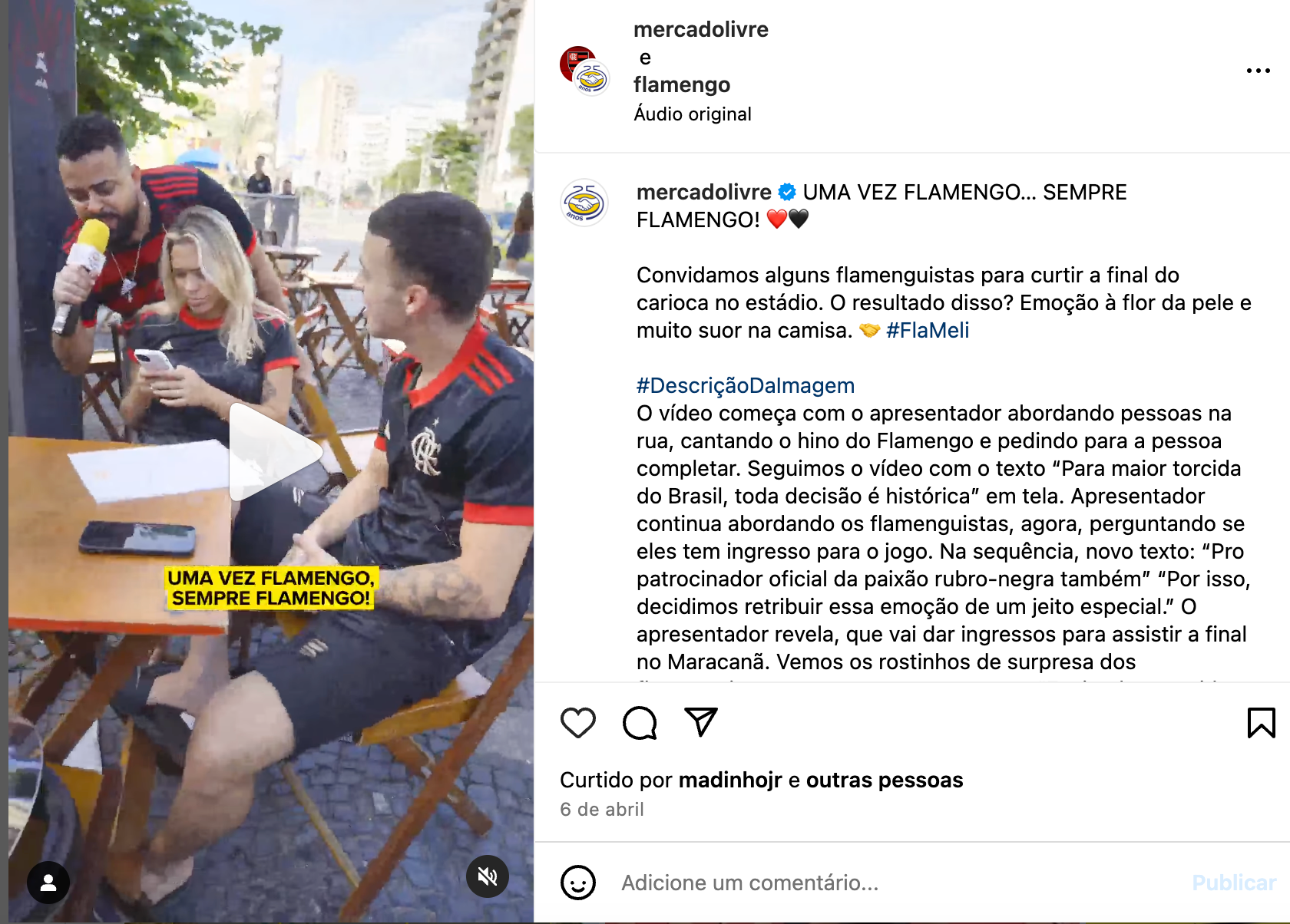 Atribuições: Atuei como Community Manager para as redes sociais da marca Mercado Livre, com foco no gerenciamento das publicações do time Esportivo Flamengo. Organizei internamente as demandas em colaboração com o time de estratégia e criação, visando desenvolver pautas de conteúdo e gerenciar os posts das redes sociais das marcas. Além disso, realizei análises de dados das publicações para manter o time alinhado com o desempenho dos posts.
